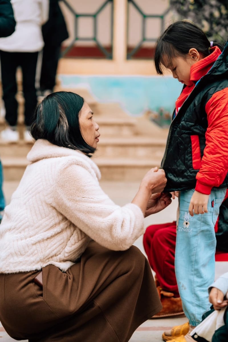 Khi các thành viên trong đoàn tận tay mặc áo khoác cho từng em nhỏ, họ nhận ra rằng vẫn còn nhiều em đi chân trần, không tất, giữa cái lạnh cắt da cắt thịt. Khi được hỏi tại sao, các em chỉ cười hồn nhiên và đáp: “Cháu không có tất.” Câu trả lời ngắn ngủi ấy để lại nỗi day dứt trong lòng những người làm công tác thiện nguyện, nhắc nhở chúng ta rằng còn biết bao điều cần làm để hỗ trợ các em vượt qua khó khăn.